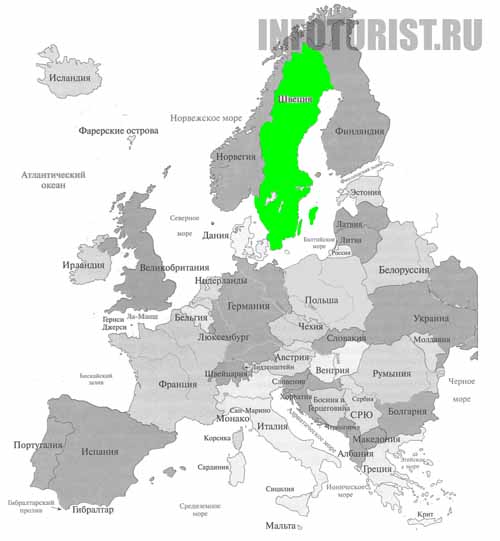 Швеция, крупнейшее государство в Скандинавии, занимает восточную и южную части полуострова, острова Эланд и Готланд в Балтийском море. Север и запад страны преимущественно гористые, на юге господствуют всхолмленные равнины.
