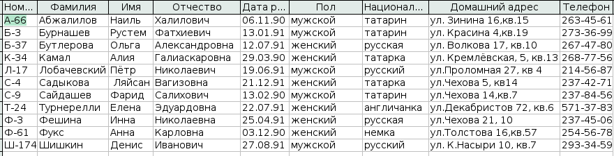 Шаг 1. Открыть таблицу «Личное дело» в режиме таблицы.