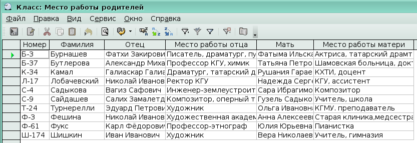 На панели инструментов нажмите кнопку Сохранить, в окне сохранения введите имя запроса Место работы родителей.