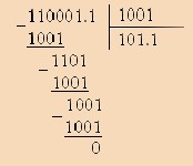 Деление двоичных чисел производится по тем же правилам, что и для десятичных. При этом используются таблицы двоичного умножения и вычитания.