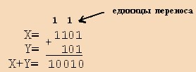 Результат 1101+101=10010.