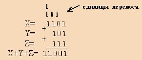 Результат 1101+101+111=11001.