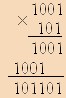 Результат 1001 x 101=101101.