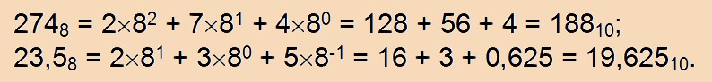 Для того чтобы перевести число в десятичную систему счисления, необходимо также представить его в виде суммы произведений составляющих его цифр на соответствующие степени основания системы: