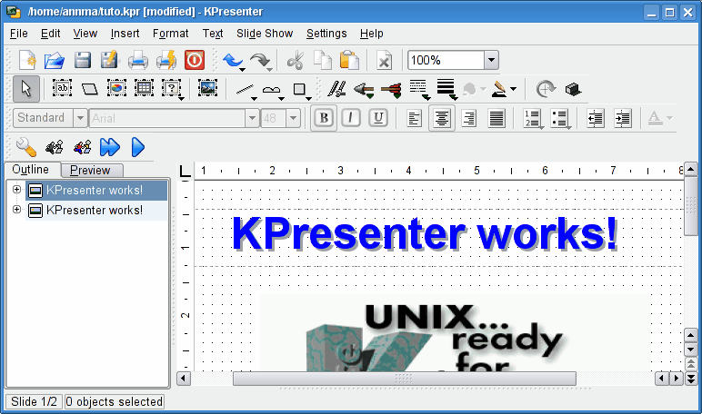 KPresenter является программой подготовки презентаций в составе пакета офисных приложений KOffice.