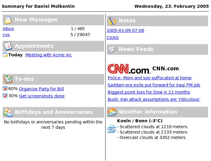Kontact — это интегрированное решение по управлению вашей персональной информацией (PIM). Он объединяет известные приложения KDE, такие как KMail, KOrganizer и KAddressBook в один интерфейс для предоставления простого доступа к почте, органайзеру, адресной книге и другим функциям PIM.