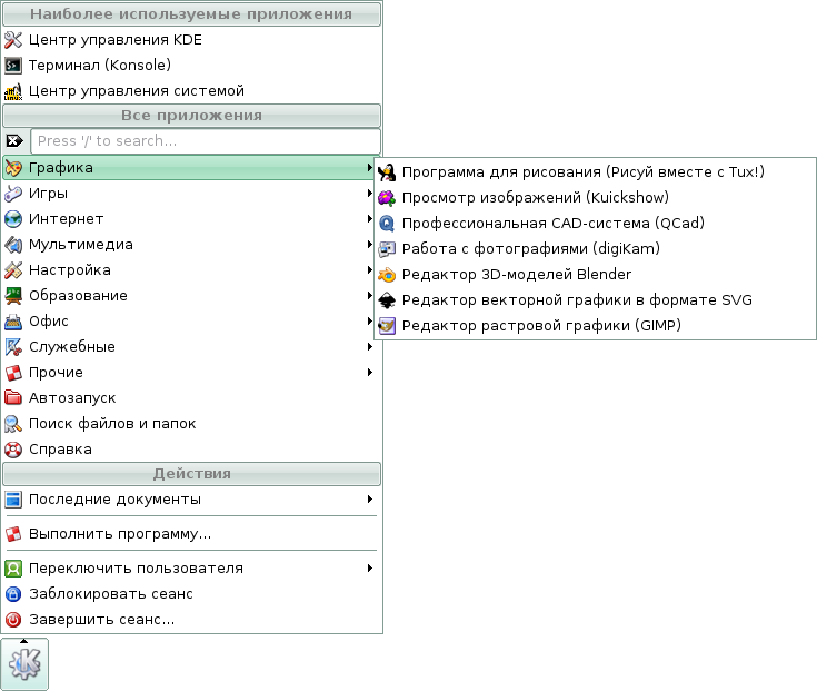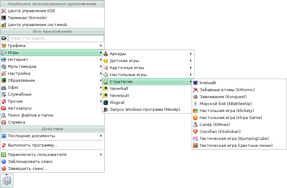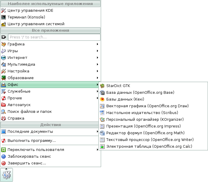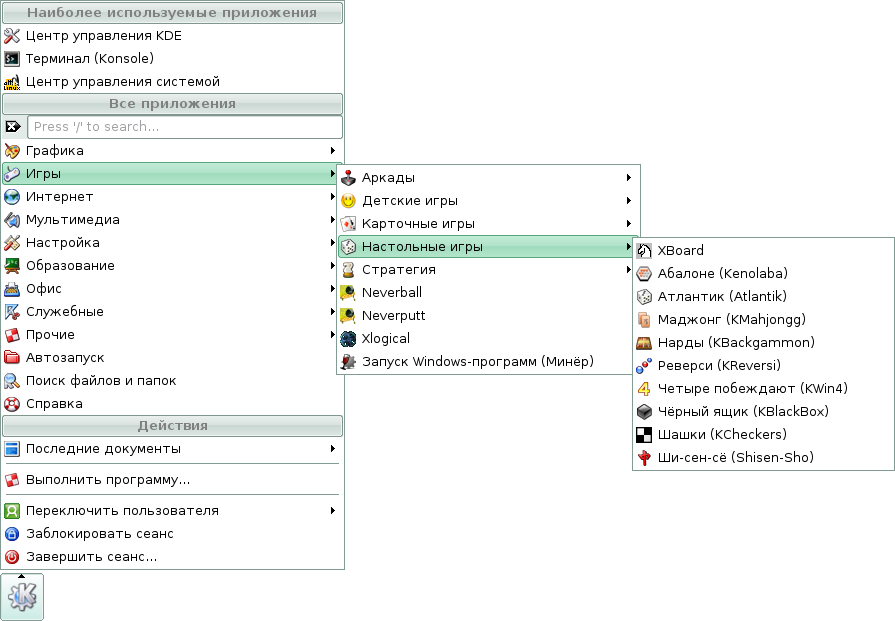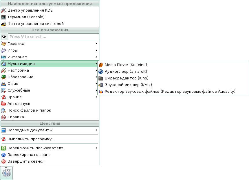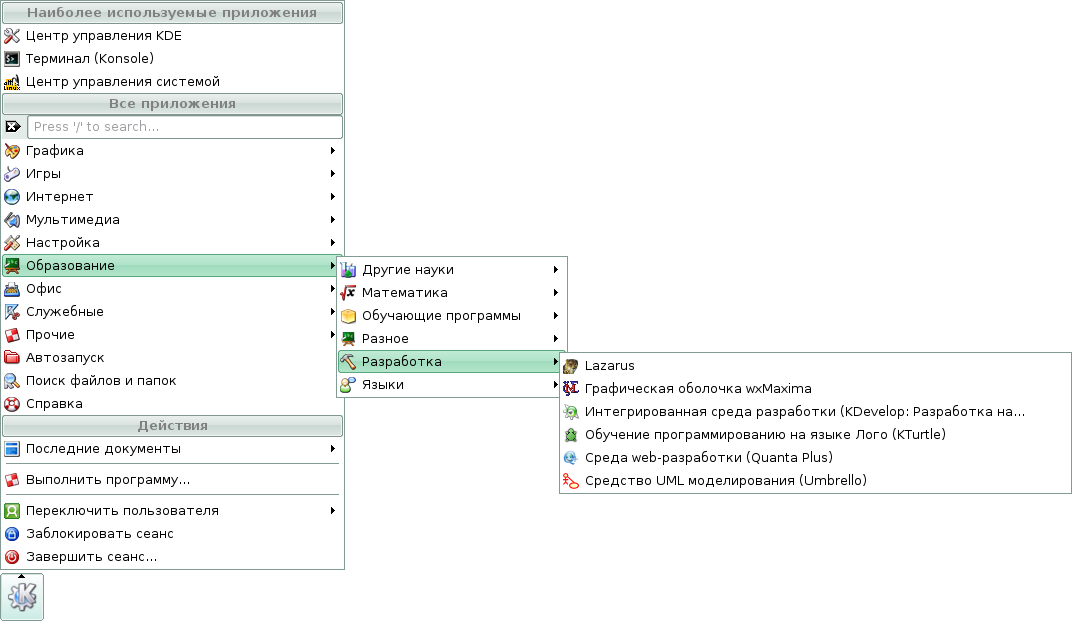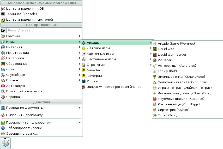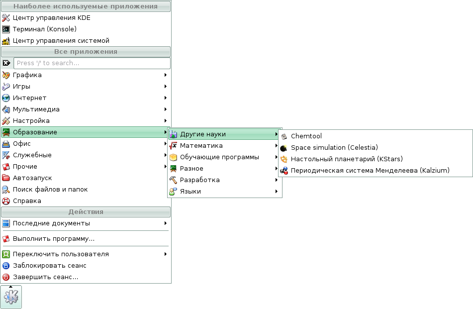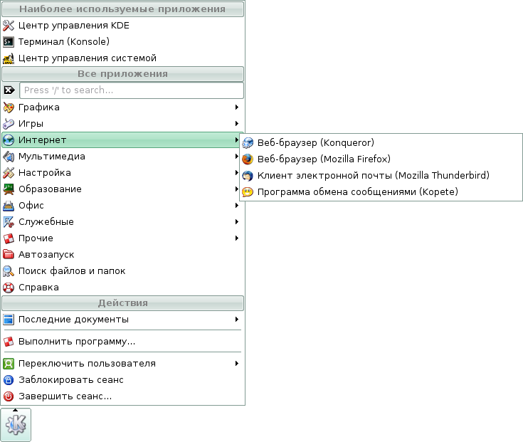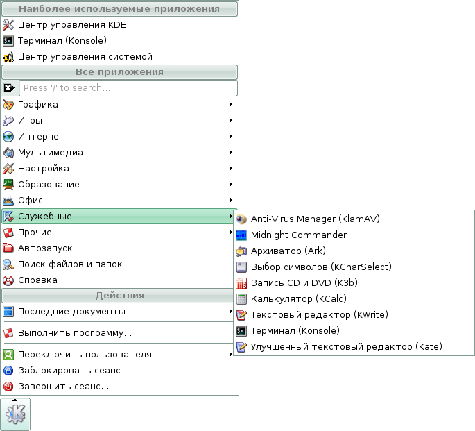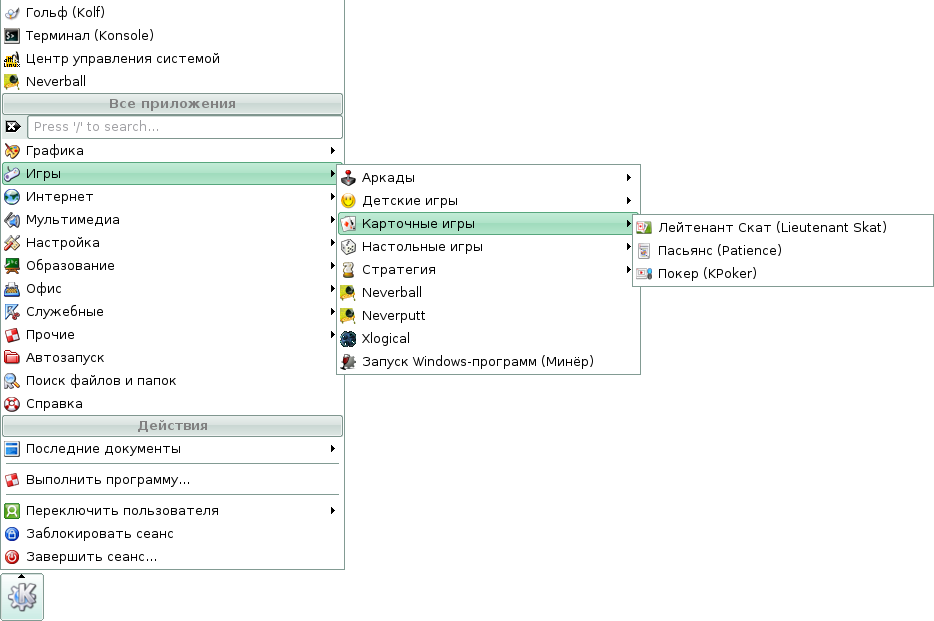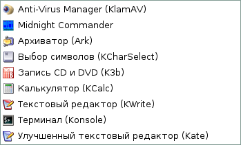 Скриншоты меню KDE дистрибутива Линукс Мастер