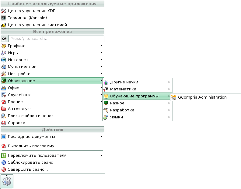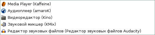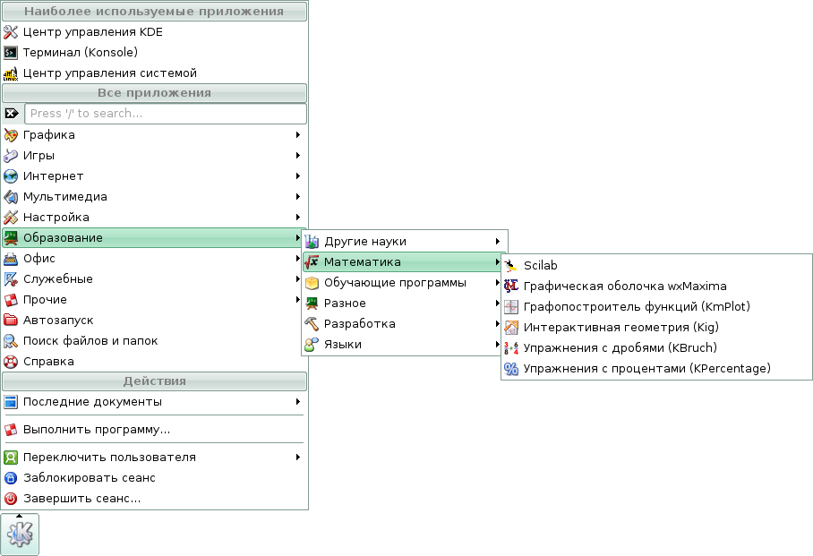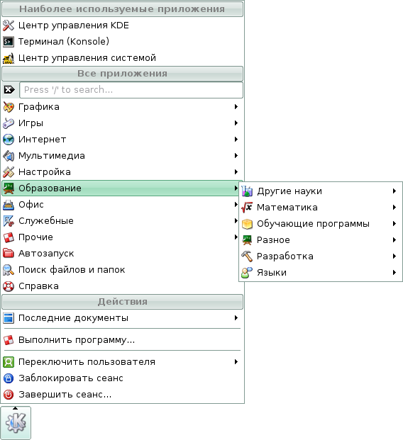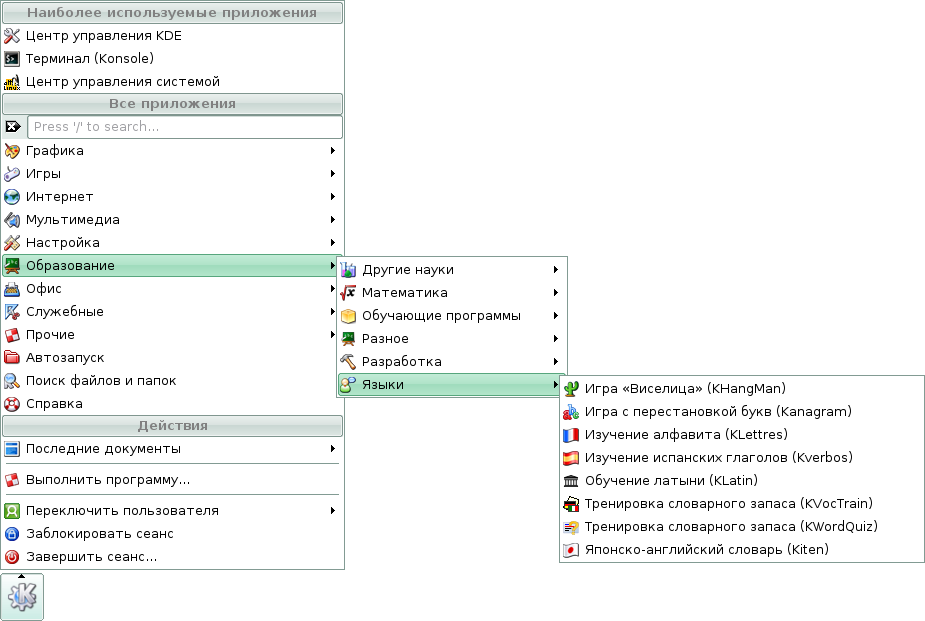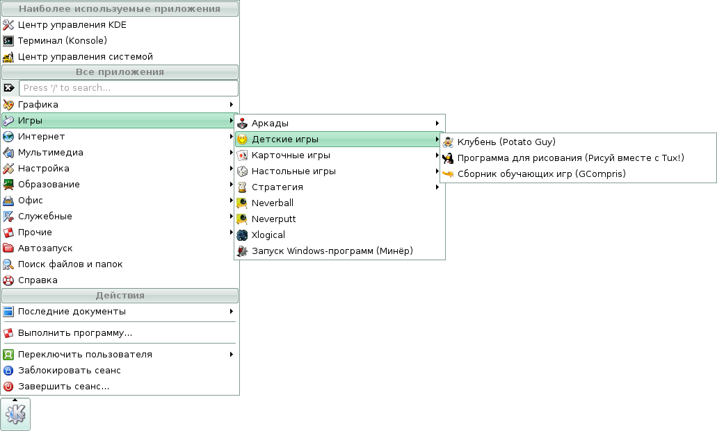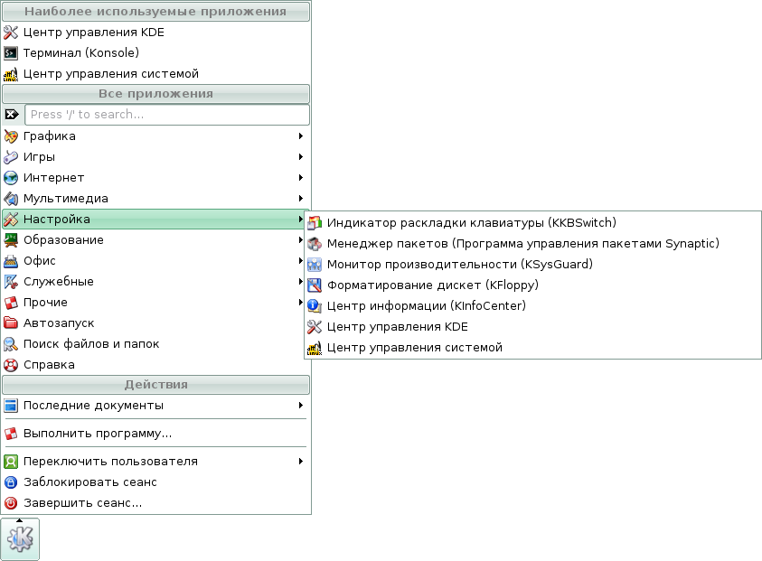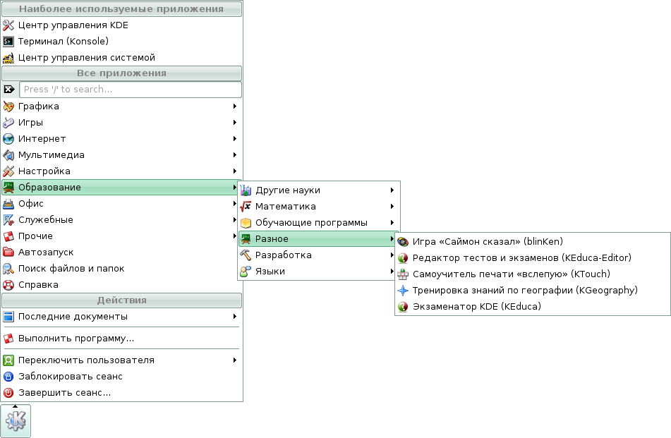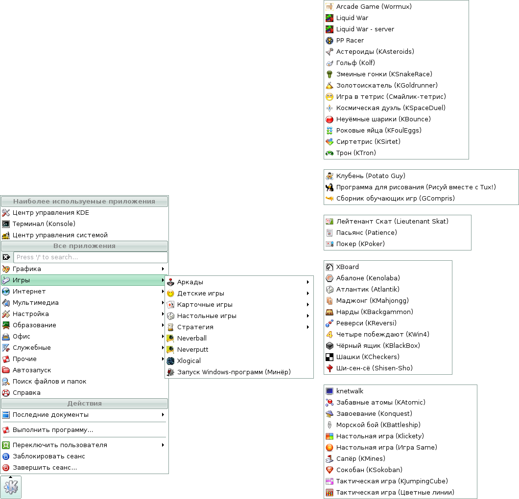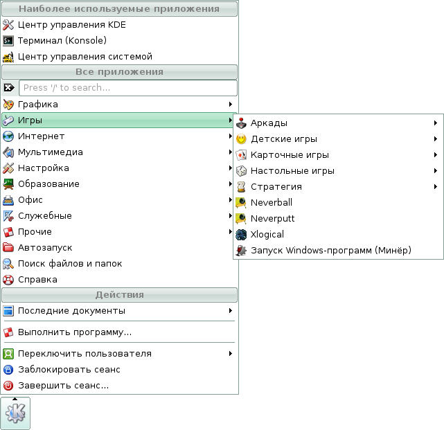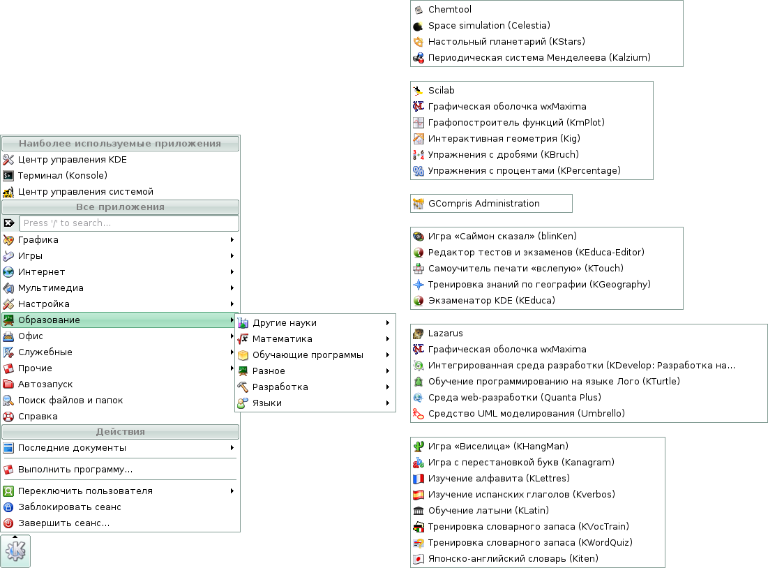Скриншоты меню KDE дистрибутива Линукс Мастер