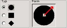 The geometry of the nib type can be adjusted by holding button 1 of the mouse on the small square at the center of the Shape icon and moving it around.