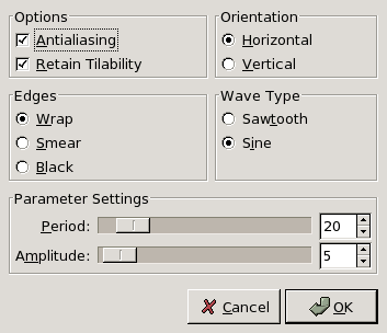 It displaces the pixels of the active layer or selection to waves or ripples reminding a reflection on disturbed water.