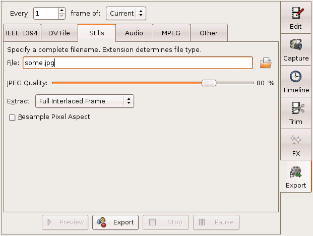 If your source material is interlaced ( Section 2.9, “Interlace and Fields” ) (most is) the Extract option menu lets you specify if you want to export the raw interlaced frame, the upper or lower field or a linear blend between the fields.