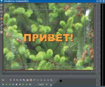 В текстовом поле – там, где невразумительный набор символов, на самом деле написано по-русски слово «привет!». Вообще способ работы движка субтитров в Cinelerra с русским языком меня удивляет, так что расставим все точки над «i». Русские буквы не отображаются в редакторе, однако их вполне видно в окне Составителя (Compositor). Иными словами, в вашем видео русские титры все-таки будут. Однако, для этого в редакторе титров надо выбрать кодировку KOI8-R, даже если у вас, как у меня, установлена другая локаль. Когда вы сохраняете свой файл проекта, то титры сохраняются в нем же, причем в кодировке KOI8-R.